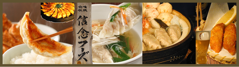 餃子・高級餃子・信念フーズ・手作り餃子原材料はすべて国産・ニンニクは清酒に漬け込み一年以上のものを使用しています。信念フーズ・