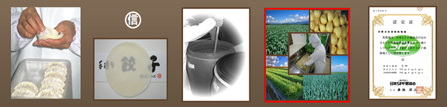 餃子・高級餃子・信念フーズ・使用野菜は国産に限る・手作り餃子原材料はすべて国産・ニンニクは清酒に漬け込み一年以上のものを使用しています・熟成ニンニク・果物たっぷり・信念フーズ・